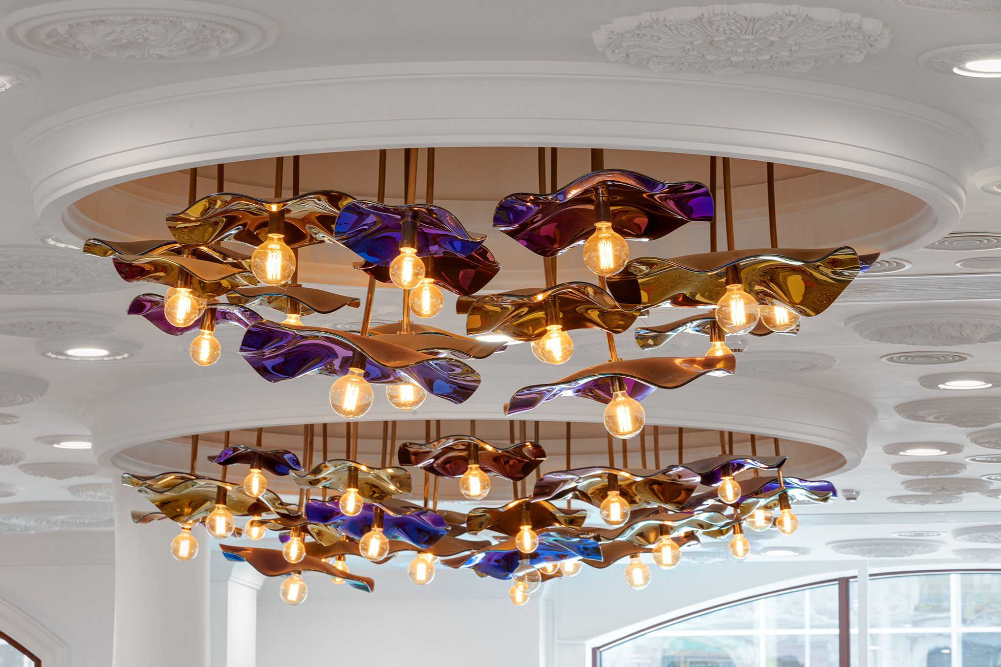 The combination of glass, metal and electric discharge gives life to hundreds of shades, textures and forms. The patented titanium coating technology expands the boundaries of the usual in design. Art products are created by Ukrainian masters by hand, in single copies.