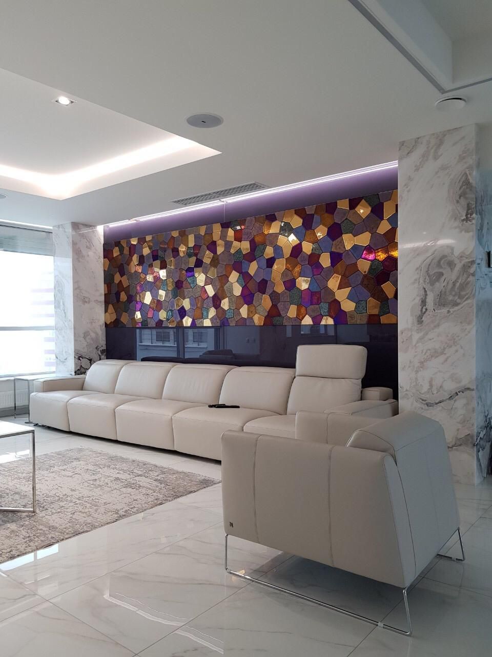 We create outdoor and indoor wall glass panels, mirrors, lamps, installations, vases, signs, glass furniture, wall decor. These are just a few of our areas of activity. Our team is constantly looking for new ideas and experimenting with different materials and shapes to make our products unique. We expand the boundaries of the usual in design.